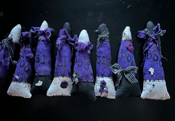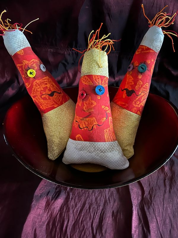 Candycorn bowl fillers in fancy purple black and white for a ‘taste’ of something different..
